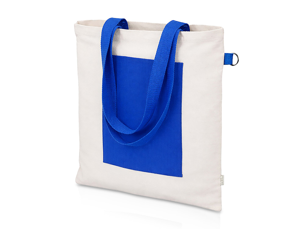 Сумка-шоппер из полностью переработанных материалов с большим контрастным карманом спереди станет стильным аксессуаром для любого случай, как поход в магазин, поездка на пикник или в путешествие. Сбоку предусмотрено д-кольцо для крепления ремувок с вашим логотипом, выполненное из переработанного металла.