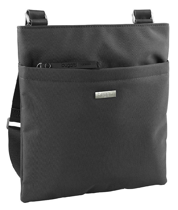 Сумка наплечная тонкая BUGATTI Contratempo, чёрная, нейлон, 23х2х25 см, 0,5 л