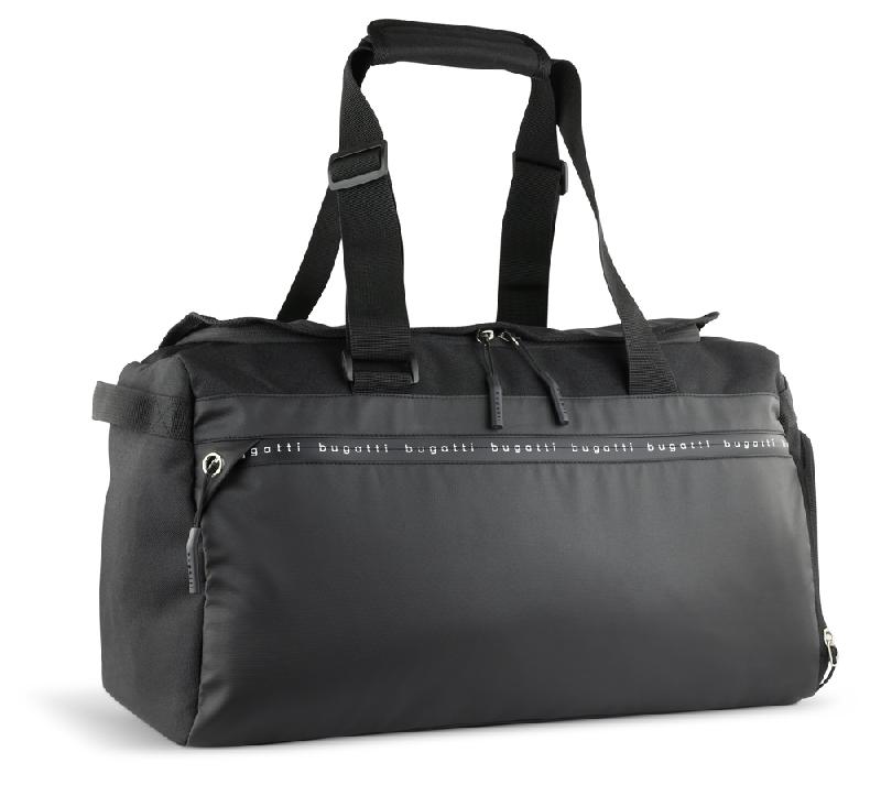 Сумка спортивная BUGATTI Blanc Delight, чёрная, нейлон RPET600D/тарпаулин/полиэстер, 47х23х28 см, 22 л