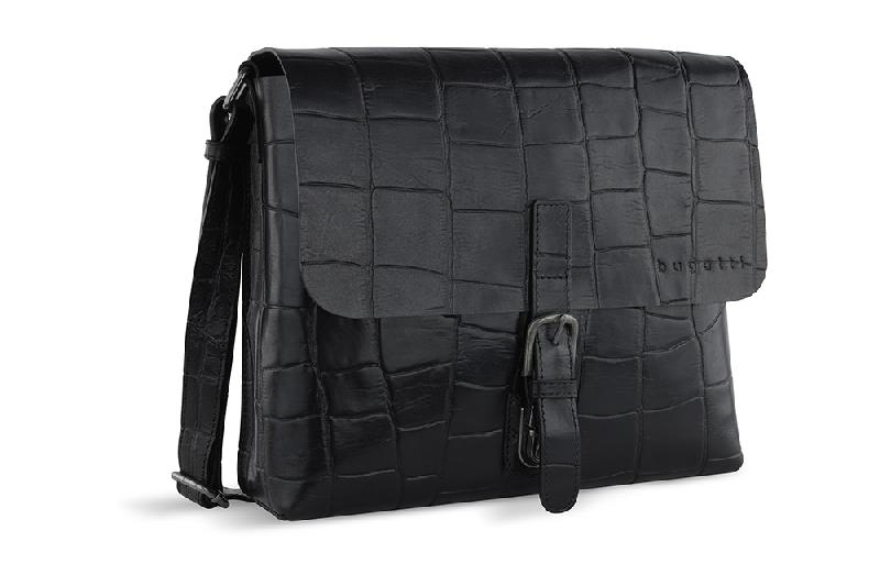 Сумка-мессенджер мужская BUGATTI Nevio, чёрная, воловья кожа/хлопок, 30,5х7х25 см, 5 л