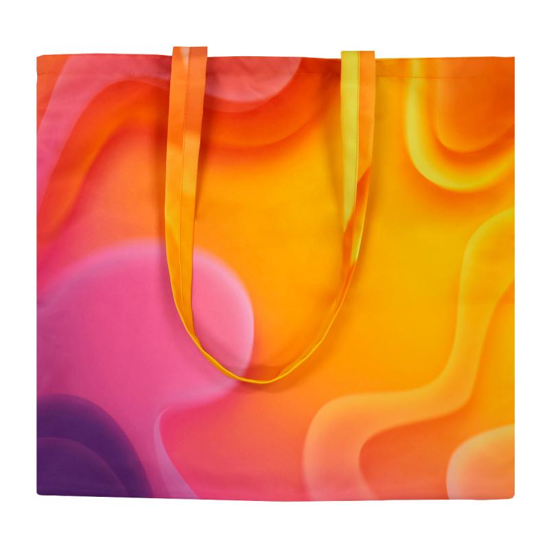 Сумка для покупок Бэгги с полноцветной печатью. ✨ Стандартный шоппер с длинными ручками. Полноцветная печать по всей поверхности от шва до шва в соответствии с брендбуком клиента (любой оттенок по CMYK: логотипы, надписи и самые разнообразные принты). Без подкладки внутри. Размер: 45 х 40см. Размер ручек: 70 х 3см (пошиты из того же материала, из которого изготавливается сама сумка). Материал: ткань Промо. Плотность: 245г/м². ✨ Ткань Промо - это 100% полиэфирное полотно саржевого переплетения с антистатической пропиткой. Ткань плотная, очень крепкая, хорошо держит форму.