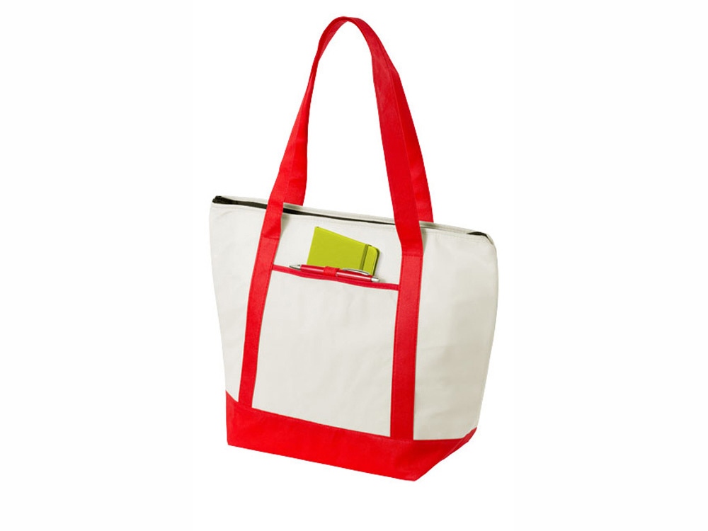 Нетканая сумка-холодильник Lighthouse. Основное отделение на молнии с двойными ручками. Высота ручек 23,5 см. Открытый передний карман с держателем для ручки. Аксессуары не включены. Нетканый полипропилен 80 г/м².