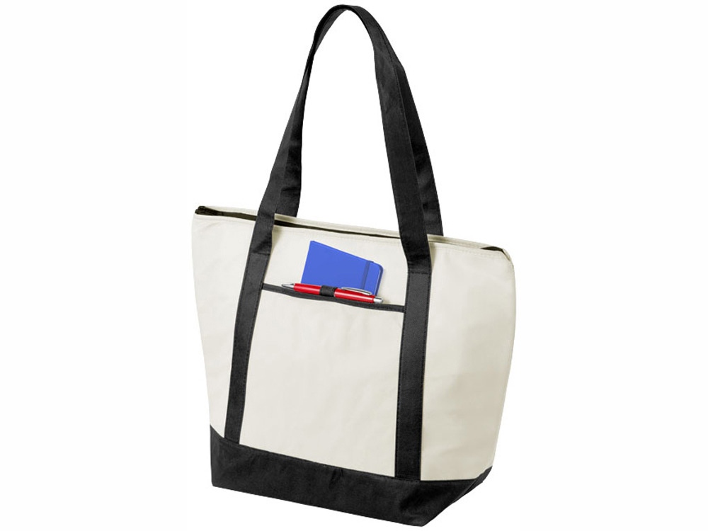 Нетканая сумка-холодильник Lighthouse. Основное отделение на молнии с двойными ручками. Высота ручек 23,5 см. Открытый передний карман с держателем для ручки. Аксессуары не включены. Нетканый полипропилен 80 г/м².