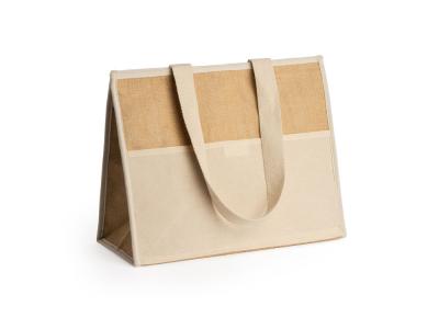 Сумка-холодильник из ламинированного джута. Изотермическая алюминиевая подкладка и застежка на липучке. Держите напитки и еду при соответствующей температуре. Передний карман и ручки из натурального хлопка.