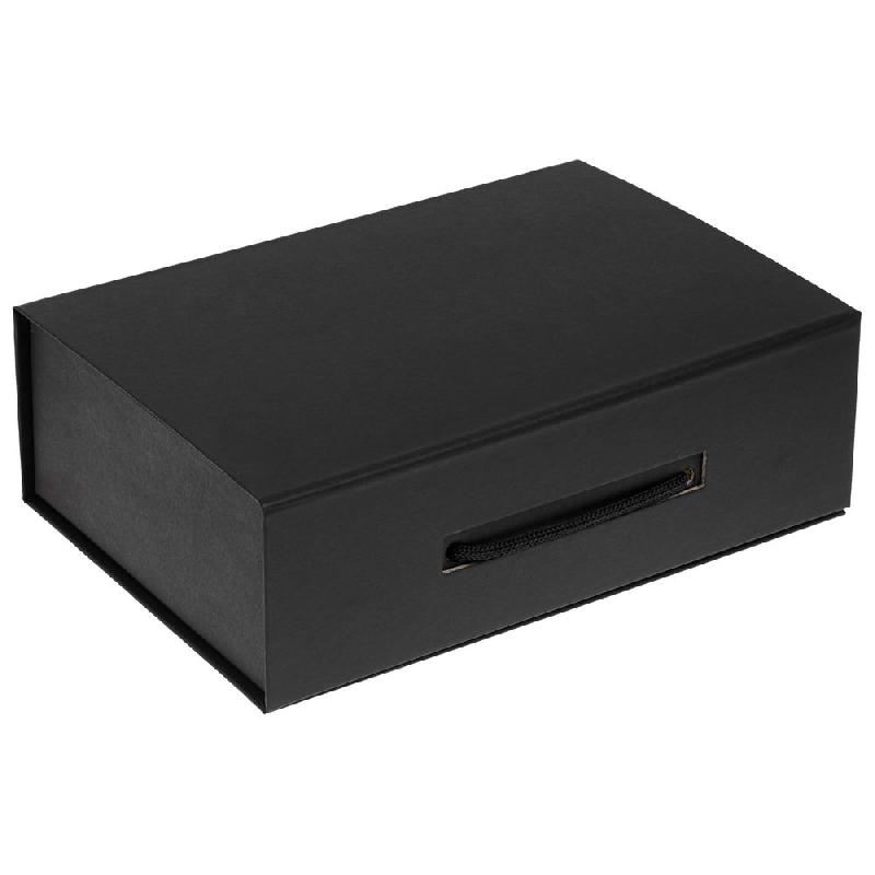 Коробка выполнена из переплетного картона, кашированного гладкой дизайнерской бумагой Magic, с крышкой на магните.