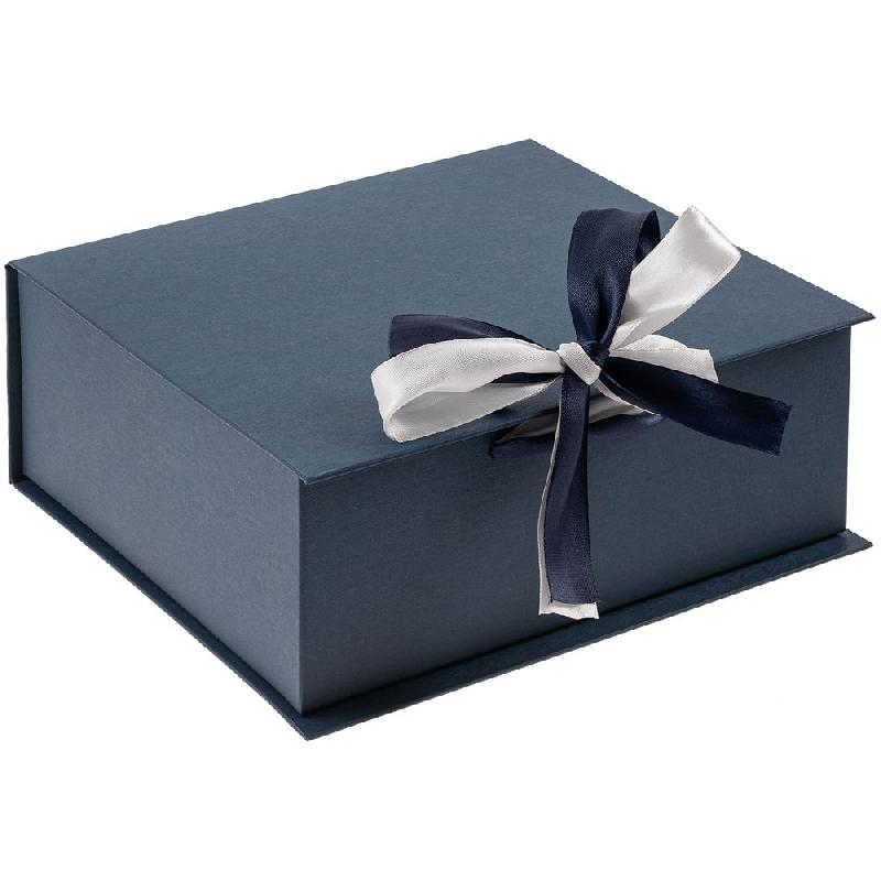 Коробка выполнена из переплетного картона, кашированного дизайнерской бумагой Majestic, с крышкой на лентах.