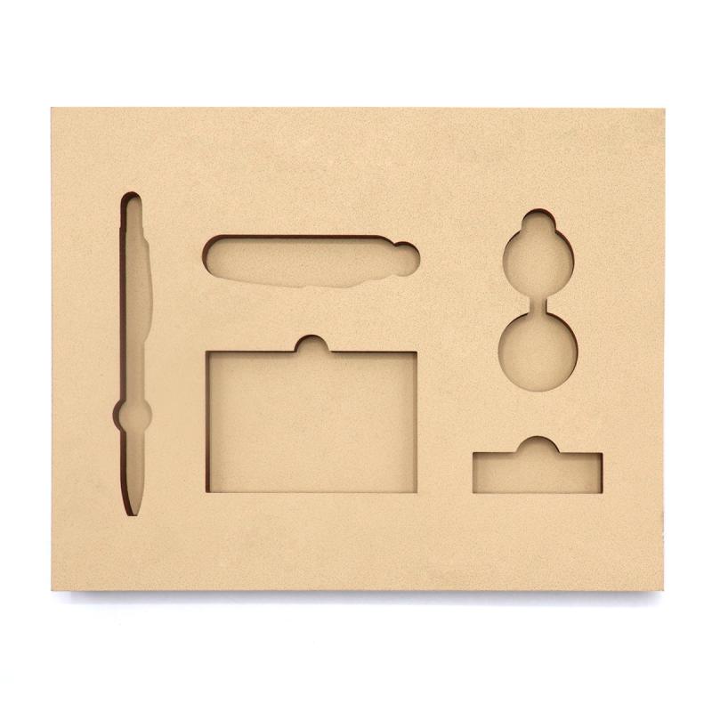 Ложемент, выполненный из бежевого ЭВА материала, представляет собой многослойную конструкцию, состоящую из двух слоев: нижнего толщиной 10 мм и верхнего — 10 мм. Согласно утвержденному макету, проемы для размещения предметов могут быть расположены как в одном, так и в обоих слоях. Данный ложемент идеально подходит для коробки Dizzy арт. RUS5055.19