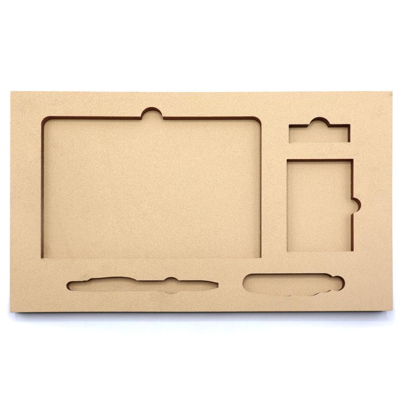 Ложемент, выполненный из бежевого ЭВА материала, представляет собой многослойную конструкцию, состоящую из двух слоев: нижнего толщиной 10 мм и верхнего — 10 мм. Согласно утвержденному макету, проемы для размещения предметов могут быть расположены как в одном, так и в обоих слоях. Пожалуйста, прикрепите к заказу оригинал-макет в формате .pdf Данный ложемент идеально подходит для коробки Dizzy арт. RUS5055.19
