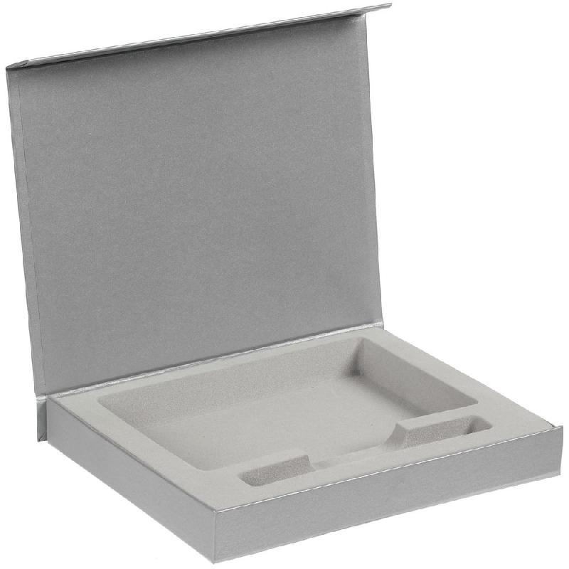 Коробка из переплетного картона, кашированного гладкой дизайнерской бумагой Magic, с крышкой на магните и флокированным ложементом.