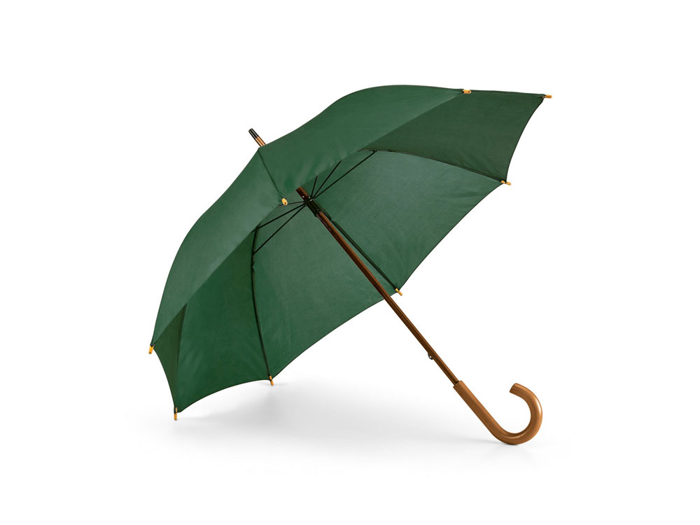 Зонт-трость из полиэстера плотностью 190Т с ручкой из дерева. Вид нанесения, рекомендуемый поставщиком: трансфер, текстильный принтер
