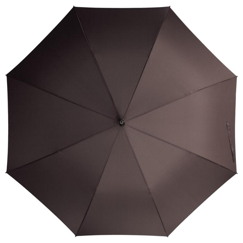 Элегантный зонт с большим куполом и деревянной J-образной ручкой.