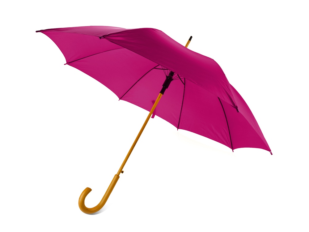 Полуавтоматический зонт-трость с деревянной ручкой выполнен из качественных материалов и устойчив к сильным порывам ветра. Яркие, сочные цвета в ассортименте.