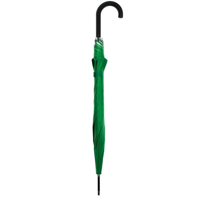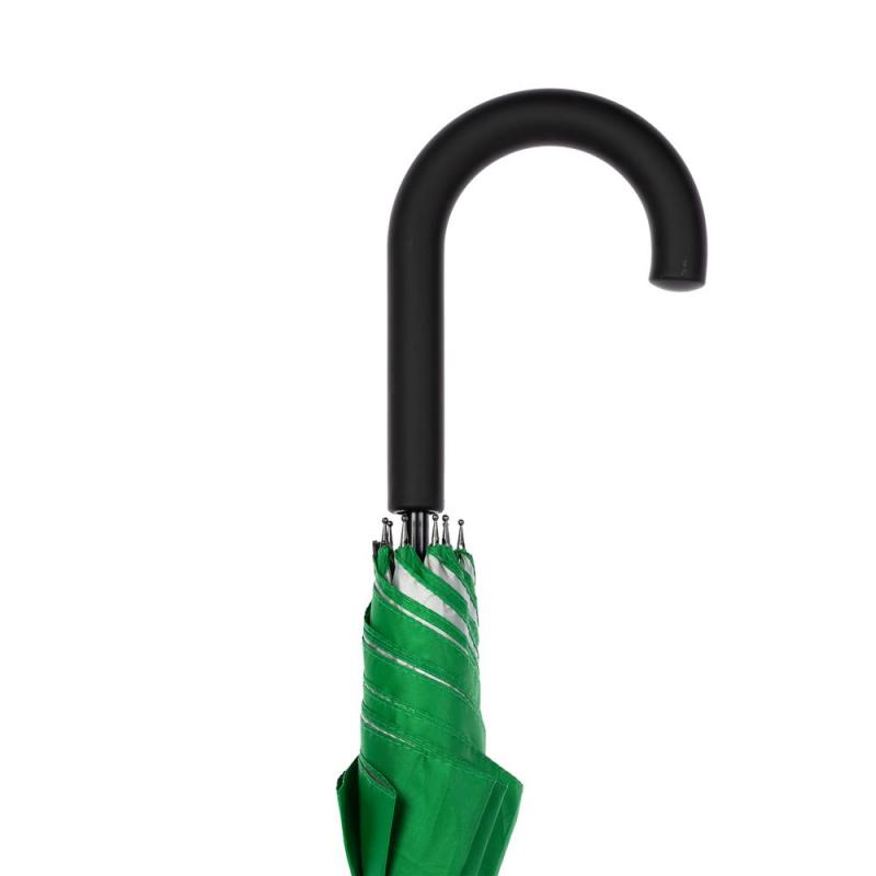 Легкий зонт-трость классической формы, который выглядит нескучно благодаря современным деталям исполнения — серебристому покрытию на внутренней части купола и мягкой прорезиненной ручке.