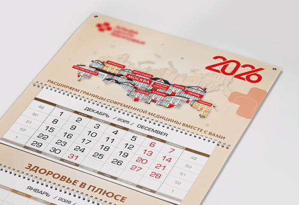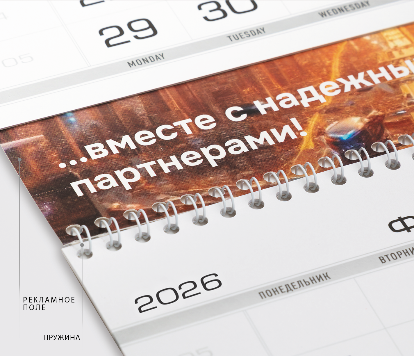 Благодаря среднему (классическому) размеру, календарь Миди №1 выглядит солидно, но не громоздко. Его три рекламные зоны делают эту модель лидером по вместимости информации среди миди-календарей, что актуально для компаний с широким спектром услуг или сложным брендом, требующим подробной презентации.