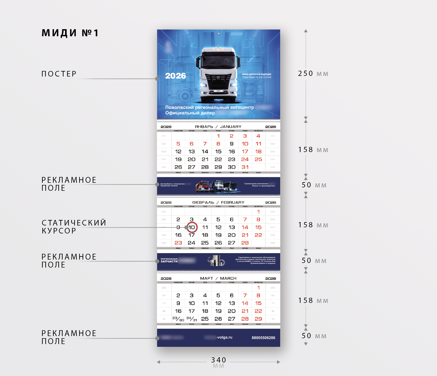 МИДИ №1 – квартальный календарь формата миди с максимальным охватом рекламных возможностей.
